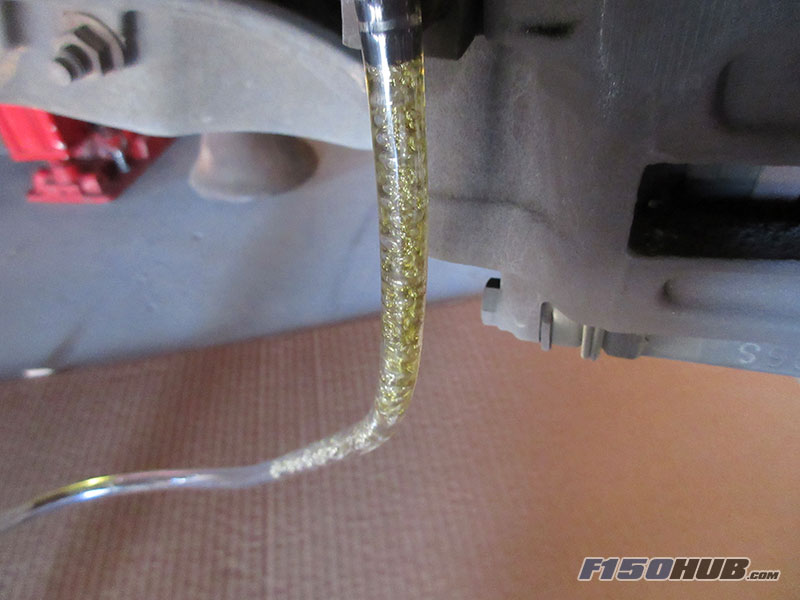 • Very small bubbles present in an otherwise solid flow of brake fluid represents a leak from the bleed orifice or the fitting(s) used to attach the bleed tool. It is difficult and rare to avoid not drawing some amount of air from the bleed valve while performing these procedures. After identifying this condition, bleed 2 to 3 additional times than close the bleed valve.