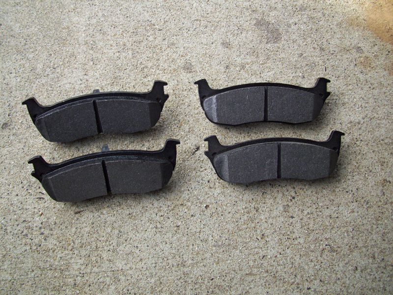 • While the front brake pads are universal for the driver and passenger side, the rear pads are not in this instance. Take note of the feet on the pads (red arrows in picture). Use the old pads as a guide so that you select the proper inner and outer pad for the driver/passenger side rear brakes.