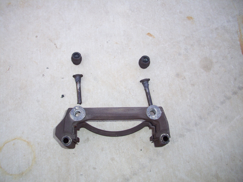 • The caliper bracket carries the caliper slide pins. Remove the rubber boot from the slide pins and set them aside for now.