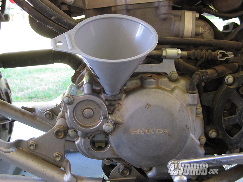 We're using Amsoil's full synthetic "Dirt Bike" 10W-40 oil. We can attest to the quality of the engine/transmission oil and its favorable characteristics when used in the TRX450R, which include a significantly improved, highly comfortable clutch feel and engagement properties. To learn more about this product, we recommend visiting: Amsoil Synthetic Dirt Bike Oil