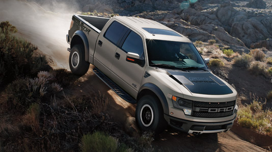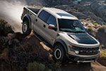 When it launched in 2010, the SVT Raptor was available with either a 5.4L or 6.2L V-8, the later producing 411 hp and 434 lb-ft at the crankshaft. In its first year, the Raptor was only available as a SuperCab model, but a SuperCrew version (4 full doors) became optional in 2011. Buyers originally had 5 colors to choose from and could order the Raptor with or without the unique graphics package. An electronic locking rear differential stuffed with 4.10 gears was also standard equipment, ensuring maximum traction when owners decide to dig deep into the powerband of the 6.2L "Boss" V-8 (standard on all 2011+ SVT Raptors). If that's not enough, a heavy duty 6 speed automatic transmission sits between fully boxed frame rails. A modified "Raptor R" completed the 41st Baja 1000 in 25 minutes 28 seconds, placing third in its class. At the popular "Best in the Desert" series, the Raptor R took second overall in its class.