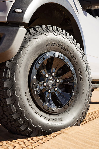 Standard 17" cast aluminum wheels, optional 17" forged aluminum bead lock convertible* wheels, BFGoodrich All-Terrain T/A KO2 tires |